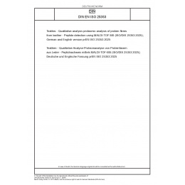 Název produktu: | Textiles - Qualitative analysis proteomic analysis of protein fibres from leather - Peptide detection using MALDI-TOF MS (ISO/DIS 25353:2025); German and English version prEN ISO 25353:2025 |