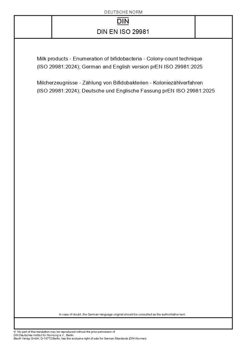 | Název produktu: | Milk products - Enumeration of bifidobacteria - Colony-count technique (ISO 29981:2024); German and English version prEN ISO 29981:2025 |