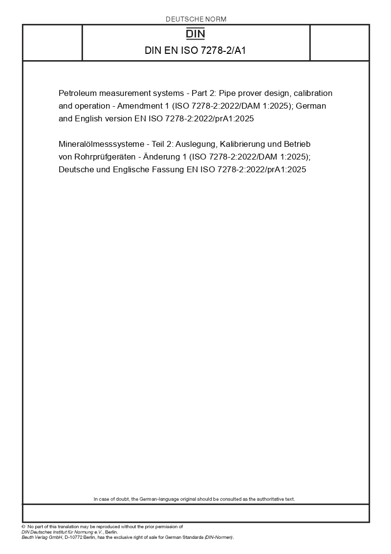 Petroleum measurement systems - Part 2: Pipe prover design, calibration and operation - Amendment 1 (ISO 7278-2:2022/DAM 1:2025); German and English version EN ISO 7278-2:2022/prA1:2025