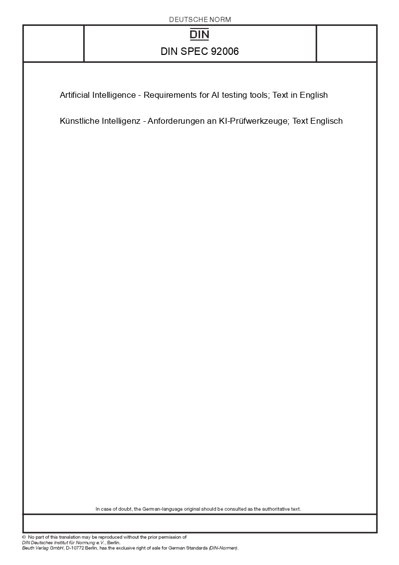 Künstliche Intelligenz - Anforderungen an KI-Prüfwerkzeuge; Text Englisch