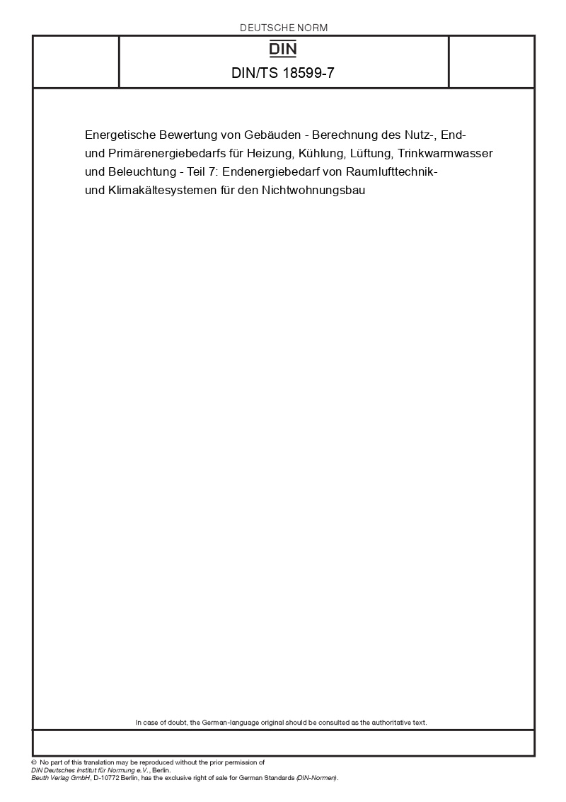 | Název produktu: | Energetische Bewertung von Gebäuden - Berechnung des Nutz-, End- und Primärenergiebedarfs für Heizung, Kühlung, Lüftung, Trinkwarmwasser und Beleuchtung - Teil 7: Endenergiebedarf von Raumlufttechnik- und Klimakältesystemen für den Nichtwohnungsbau |