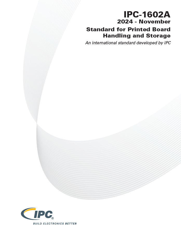The industry's sole standard on the handling, packaging and storage of printed boards. The requirements in this document are intended to protect printed boards from contamination, physical damage, solderability degradation, ESD and moisture uptake. Consideration is given to packaging material types and methods, production environment, handling and transport of product, and establishing baking profiles for moisture removal. This document addresses the impact of baking on printed board solderability, moisture concerns for etched cores and composites, dry packaging requirements including moisture barrier bags (MBBs), desiccant material and HIC cards, test coupons for evaluating relative moisture absorption and guidance for floor life and rework by baking. Supersedes IPC-1602.