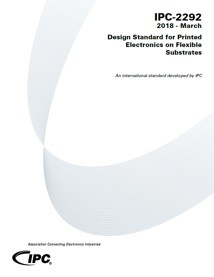 IPC-2292 standard establishes specific requirements for the design of printed electronic applications and their forms of component mounting and interconnecting structures on flexible substrates. Flexible substrates, as pertaining to IPC-2292 standard, are materials or devices which have some amount of flexibility or bendability (not rigid) but are not considered to be stretchable (e.g., fabrics, textiles, stretchable polymers, etc.).