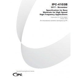 IPC-4103B standard covers the requirements for clad and unclad plastic laminate and bonding layer materials to be used for the fabrication of printed boards for microstrip, stripline and high speed digital electrical and electronic circuits. In addition to better definitions of inclusions and how to properly classify them; redefine "substrates" as, "fabricated sheets"; and a more proper definition of thermal conductivity of laminates and bonding material, IPC-4103B also allows the use of low permittivity (dielectric constant) glass reinforcements for laminates and bonding materials, thus improving both the permittivity and loss tangent properties of the materials conforming to this specification.