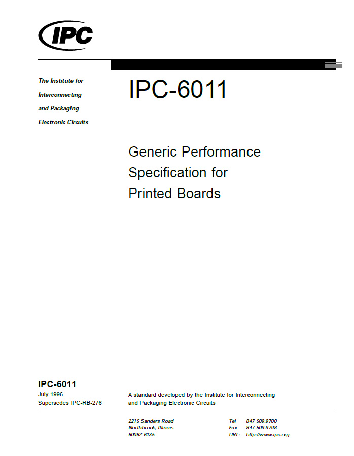 This specification establishes the general requirements and responsibilities for suppliers and users of printed boards. Serving as the foundation for the IPC-6010 Board Performance Documents series, it describes quality and reliability assurance requirements that must be met. For use with IPC-6012 through IPC-6018. Supersedes IPC-RB-276, IPC-SC-320, IPC-TC-500, IPC-ML-950C. 15 pages. Released July 1996.