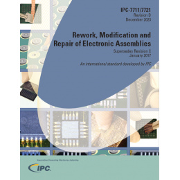 The IPC-7711/21 guide provides procedures for rework, repair and modification of printed board assemblies, including tools and materials, common procedures, coating removal and graphics to assist the user.