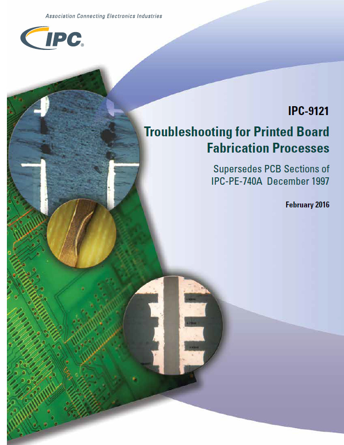 This handbook is an essential resource for anyone involved in manufacturing or purchasing PCBs. Hundreds of real-world, full-color photos spotlight more than 650 PCB process defects, with causes and corrective actions for each. IPC-9121 supersedes the PCB sections of IPC-PE-740A. Released March 2016