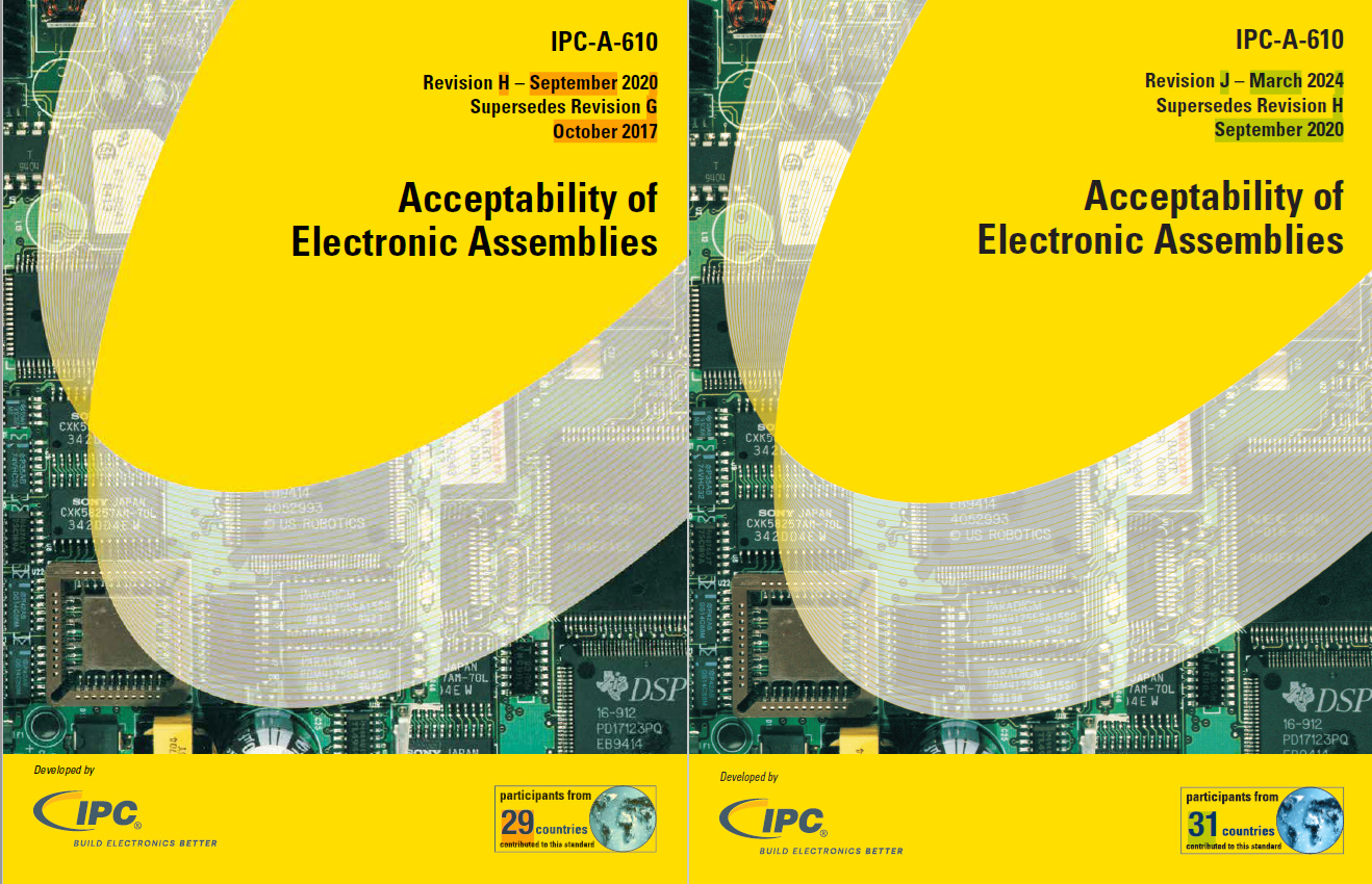 IPC-A-610H to IPC-A-610J redline document shows the changes from IPC-A-610H to IPC-A-610J in a side-by-side comparison of the two documents. The IPC-A-610J redline is only available in electronic format, it is not available in hardcopy. As a comparison document it does not replace the standard.