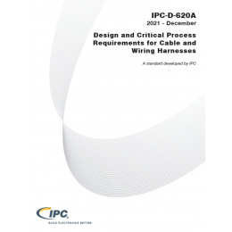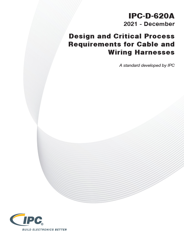 The IPC-D-620A standard provides design and critical process requirements for cable and wire harness assemblies as well as military/space applications. IPC-D-620A is the design requirements companion to IPC/WHMA-A-620, "Requirements and Acceptance for Cable and Wire Harness Assemblies," and its associated Space Addendum.