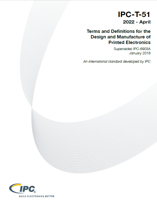 IPC-T-51 standard provides terms and definitions for the design and manufacture of printed electronics. IPC-T-51 standard enables common language and understanding for the worldwide printed electronics community.