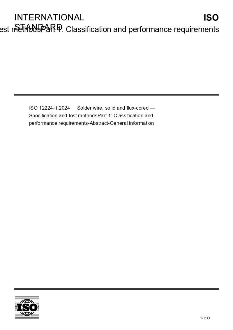 ISO 12224-1:2024-Solder wire, solid and flux-cored — Specification and test methods — Part 1: Classification and performance requirements