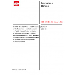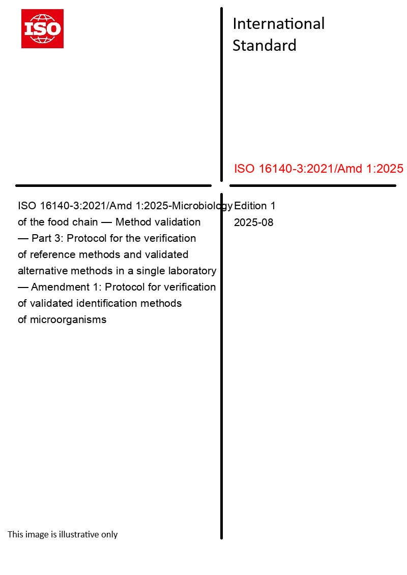 ISO 16140-3:2021/Amd 1:2025 - Microbiology of the food chain — Method validation — Part 3: Protocol for the verification of reference methods and validated alternative methods in a single laboratory — Amendment 1: Protocol for verification of validated identification methods of microorganisms