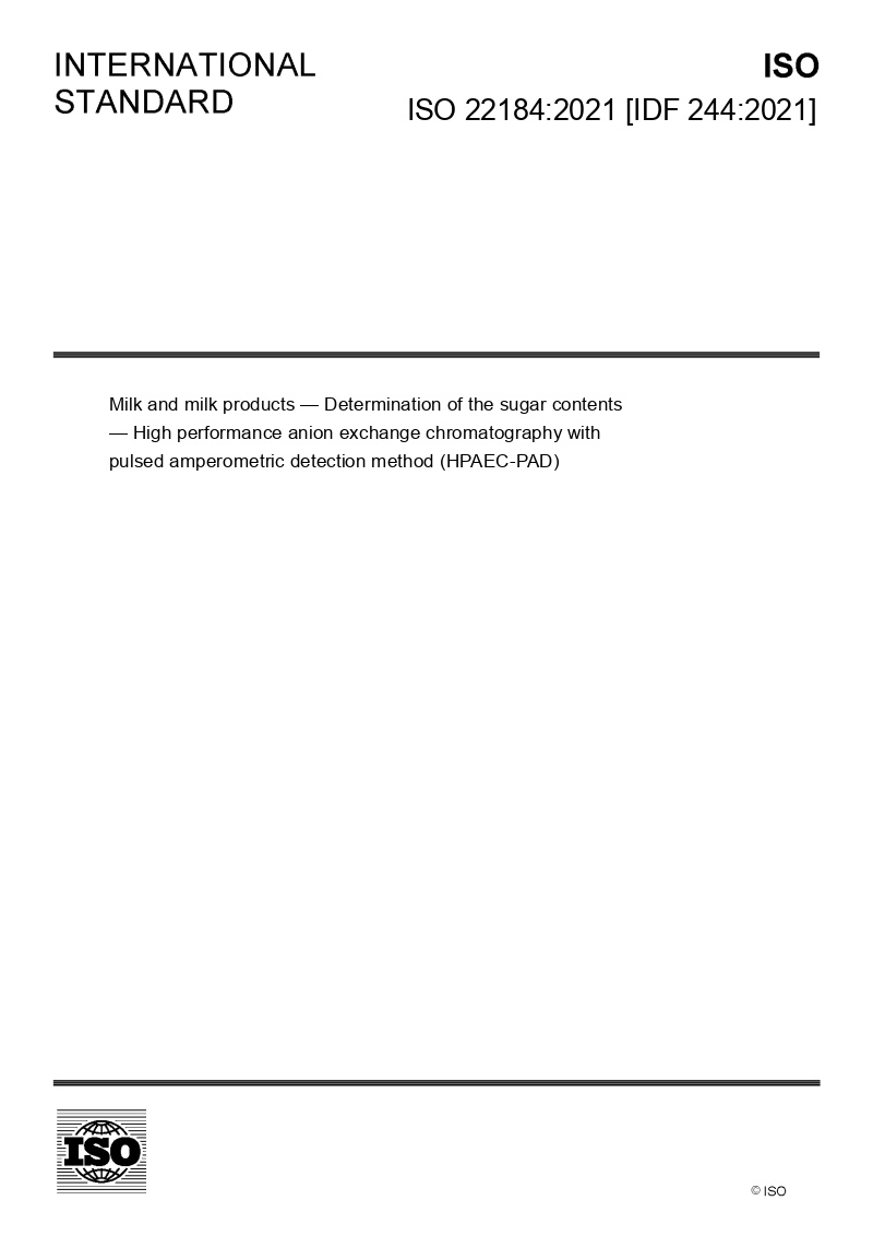ISO 22184:2021 | IDF 244:2021-Milk and milk products — Determination of the sugar contents — High performance anion exchange chromatography with pulsed amperometric detection method (HPAEC-PAD)