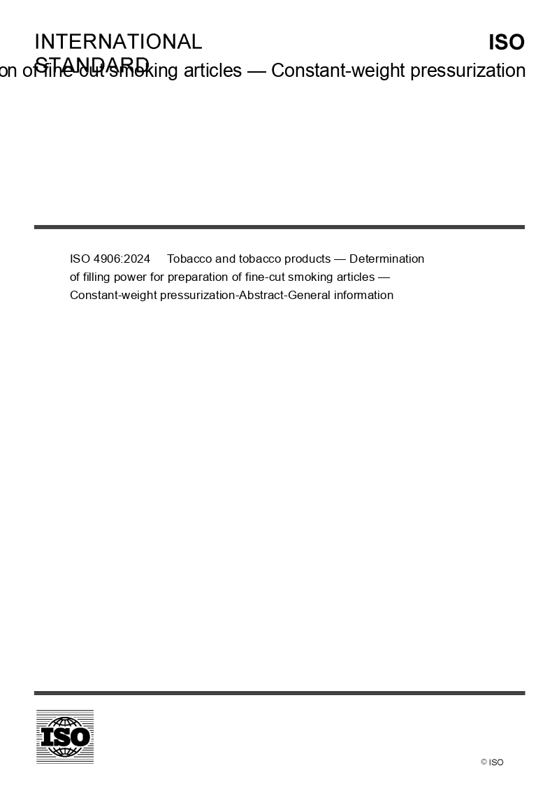 ISO 4906:2024-Tobacco and tobacco products — Determination of filling power for preparation of fine-cut smoking articles — Constant-weight pressurization