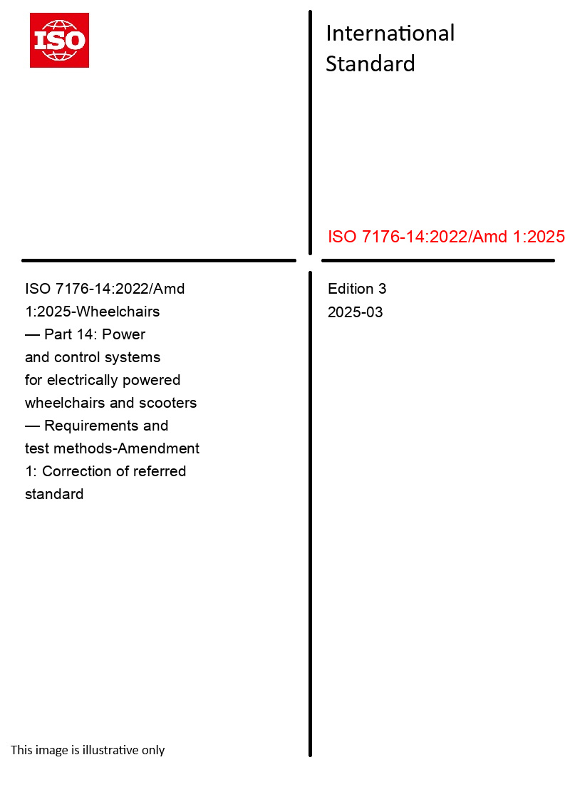 ISO 7176-14:2022/Amd 1:2025 - Wheelchairs — Part 14: Power and control systems for electrically powered wheelchairs and scooters — Requirements and test methods — Amendment 1: Correction of referred standard