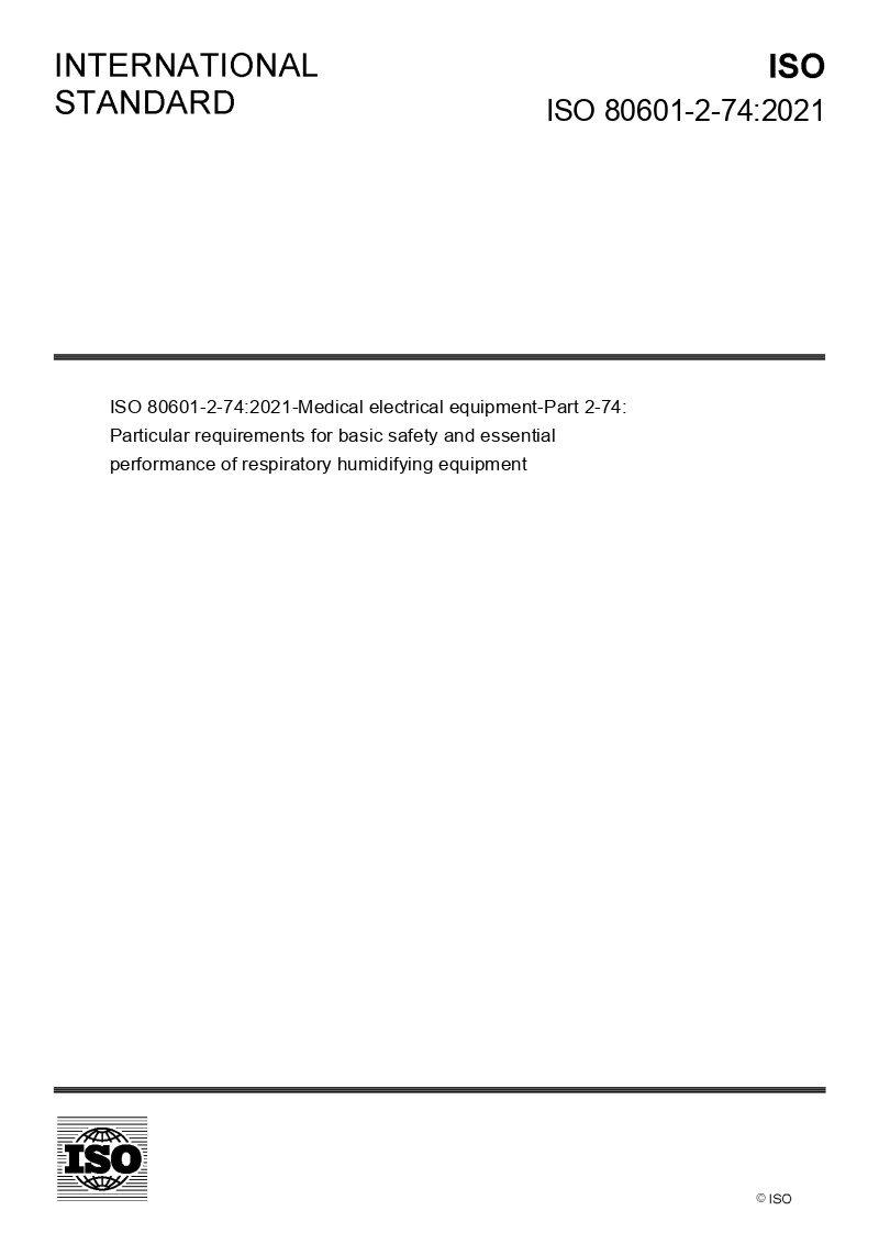 ISO 80601-2-74:2021-Medical electrical equipment — Part 2-74: Particular requirements for basic safety and essential performance of respiratory humidifying equipment