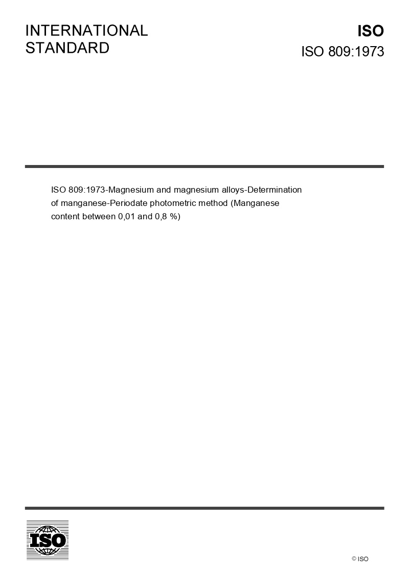ISO 809:1973-Magnesium and magnesium alloys — Determination of manganese — Periodate photometric method (Manganese content between 0,01 and 0,8 %)