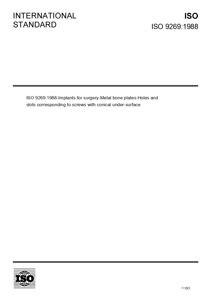 ISO 9269:1988 - Implants for surgery — Metal bone plates — Holes and slots corresponding to screws with conical under-surface