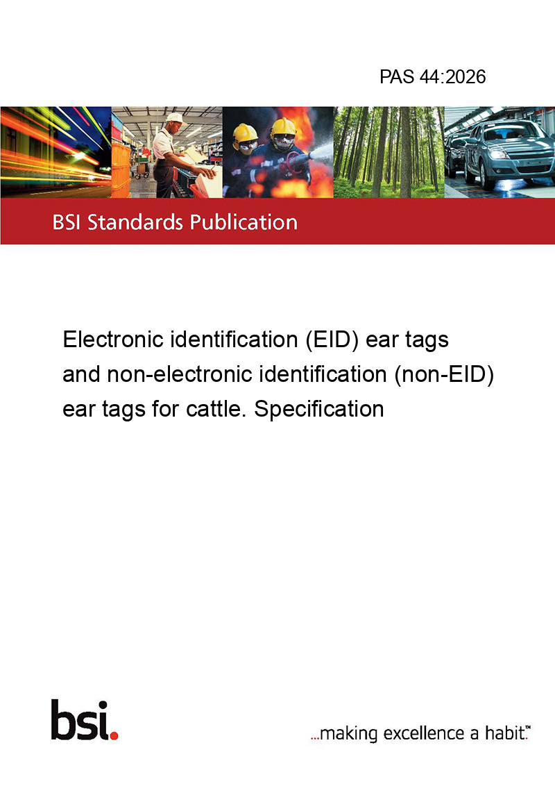 This standard PAS 44:2026 Electronic identification (EID) ear tags and non-electronic identification (non-EID) ear tags for cattle. Specification is classified in these ICS categories: