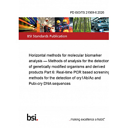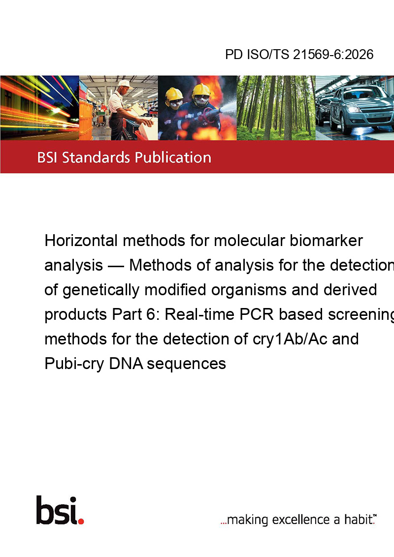 This standard PD ISO/TS 21569-6:2026 Horizontal methods for molecular biomarker analysis — Methods of analysis for the detection of genetically modified organisms and derived products is classified in these ICS categories: