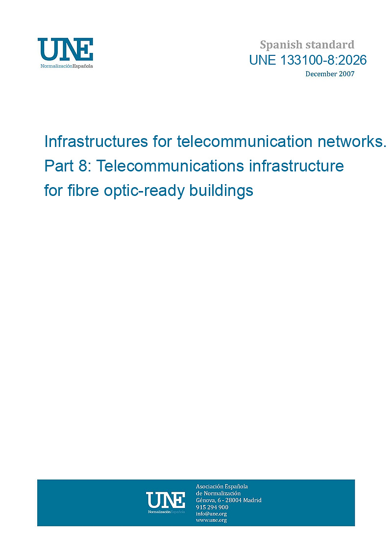 UNE 133100-8:2026 - Infrastructures for telecommunication networks. Part 8: Telecommunications infrastructure for fibre optic-ready buildings