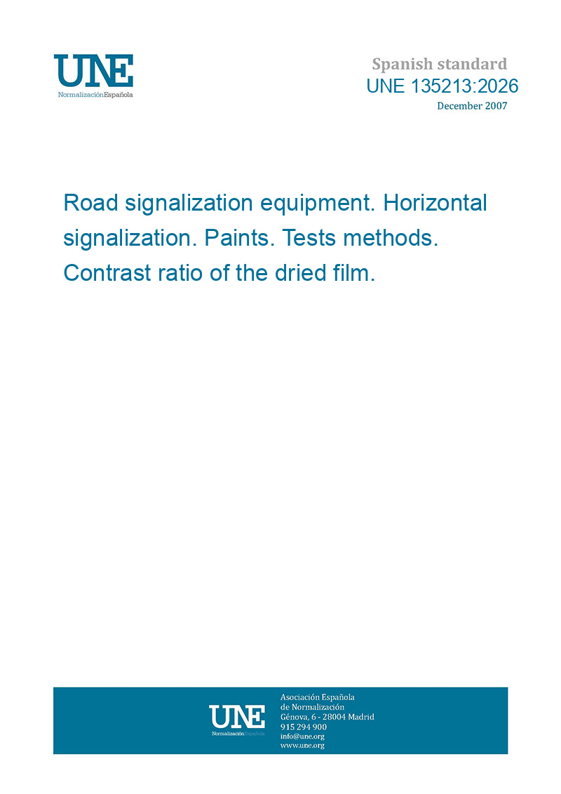 This standard UNE 135213:2026 Road signalization equipment. Horizontal signalization. Paints. Tests methods. Contrast ratio of the dried film. is classified in these ICS categories: