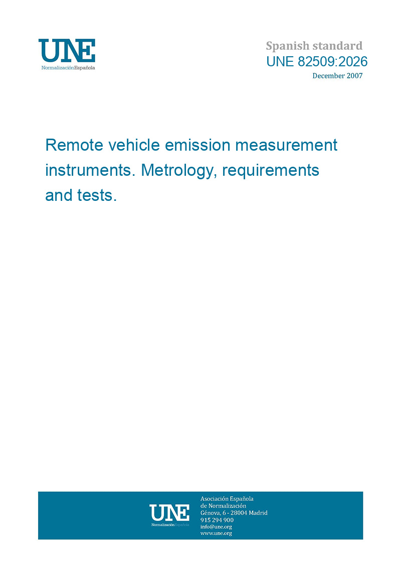 This standard UNE 82509:2026 Remote vehicle emission measurement instruments. Metrology, requirements and tests. is classified in these ICS categories: