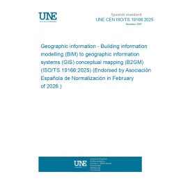 Geographic information - Building information modelling (BIM) to geographic information systems (GIS) conceptual mapping (B2GM) (ISO/TS 19166:2025) (Endorsed by Asociación Española de Normalización in February of 2026.)