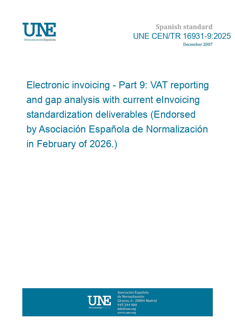 Electronic invoicing - Part 9: VAT reporting and gap analysis with current eInvoicing standardization deliverables (Endorsed by Asociación Española de Normalización in February of 2026.)
