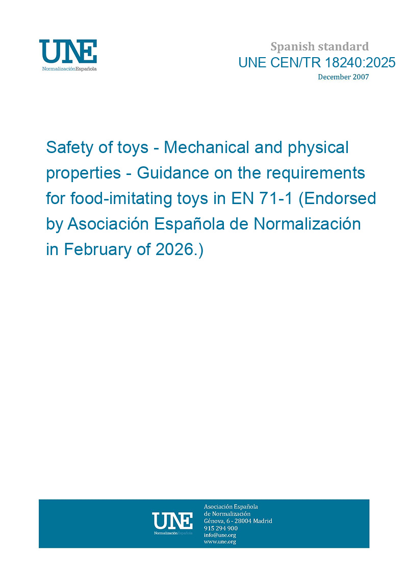 Safety of toys - Mechanical and physical properties - Guidance on the requirements for food-imitating toys in EN 71-1 (Endorsed by Asociación Española de Normalización in February of 2026.)