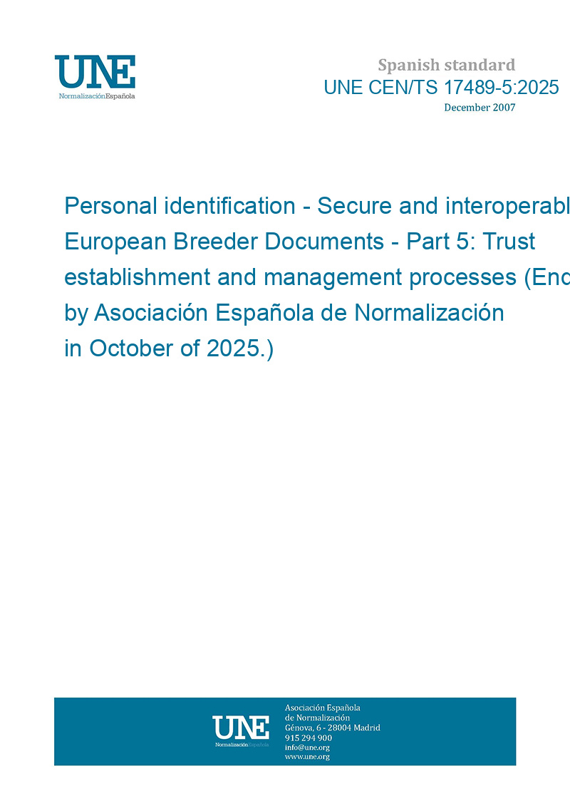 Personal identification - Secure and interoperable European Breeder Documents - Part 5: Trust establishment and management processes (Endorsed by Asociación Española de Normalización in October of 2025.)