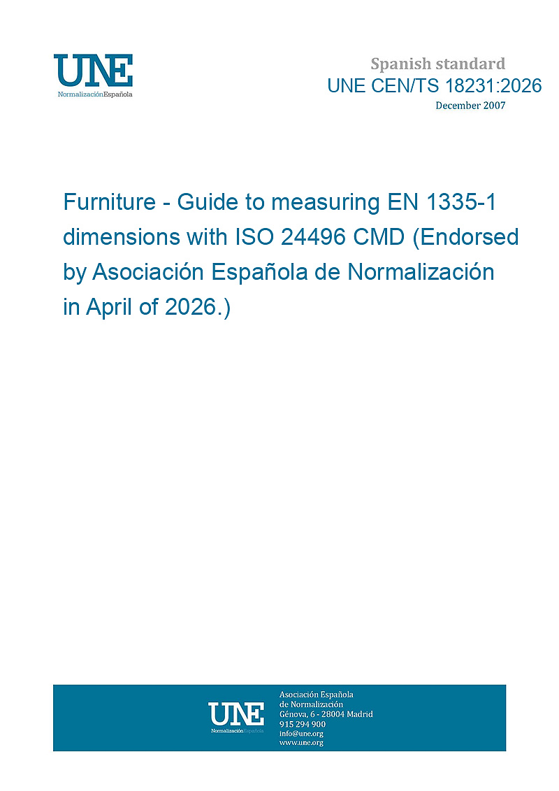Mobiliario. Guía para la medición de dimensiones según la norma EN 1335-1 con el CMD de la norma ISO 24496. (Ratificada por la Asociación Española de Normalización en abril de 2026.)