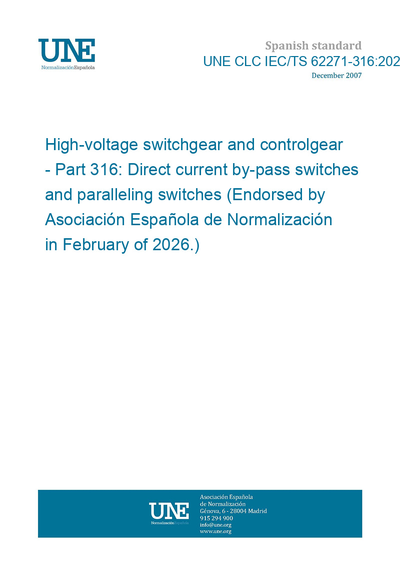 Aparamenta de alta tensión. Parte 316: Interruptores de bypass de corriente continua y seccionadores de paralelo (Ratificada por la Asociación Española de Normalización en febrero de 2026.)
