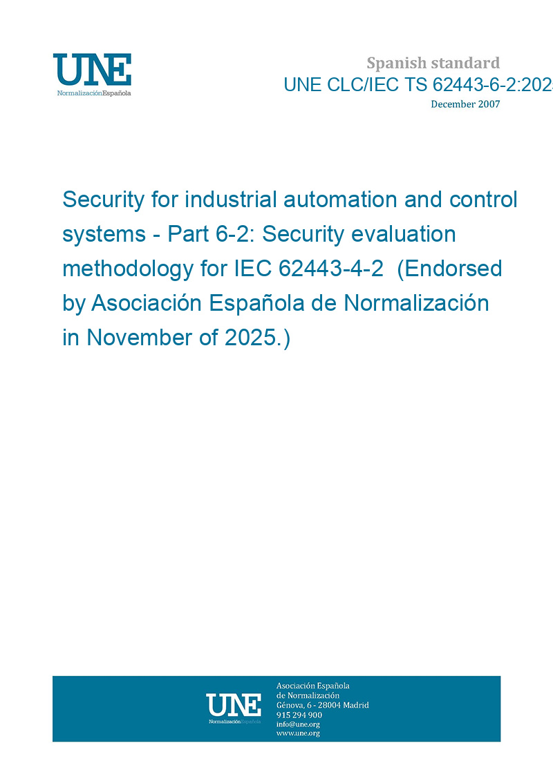 Security for industrial automation and control systems - Part 6-2: Security evaluation methodology for IEC 62443-4-2 (Endorsed by Asociación Española de Normalización in November of 2025.)