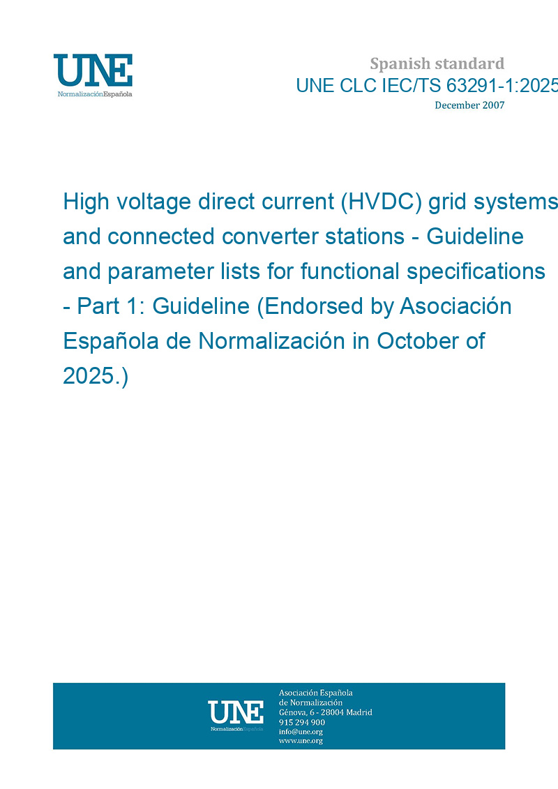 Sistemas de red de alta tensión en corriente continua (HVDC) y estaciones de convertidor conectadas. Directrices y listas de parámetros para especificaciones funcionales. Parte 1: Directrices (Ratificada por la Asociación Española de Normalización en octubre de 2025.)