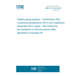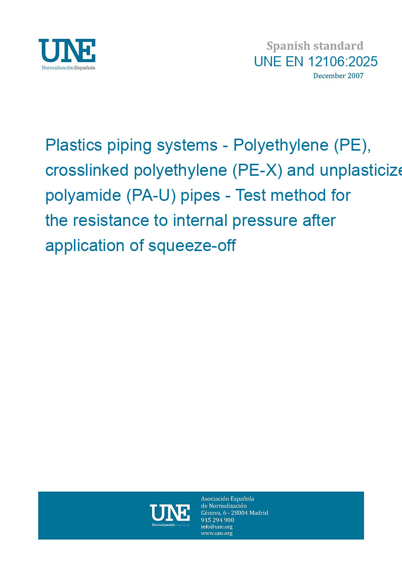 This standard UNE EN 12106:2025 Plastics piping systems - Polyethylene (PE), crosslinked polyethylene (PE-X) and unplasticized polyamide (PA-U) pipes - Test method for the resistance to internal pressure after application of squeeze-off is classified in these ICS categories:
