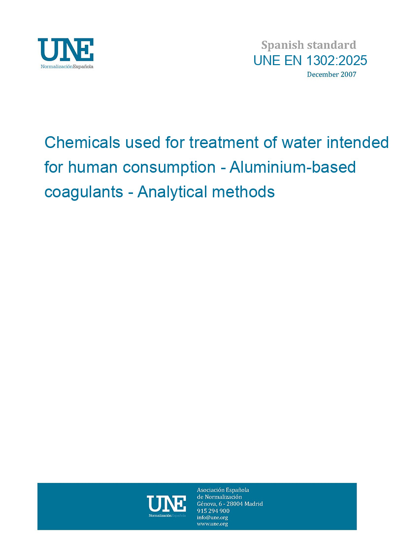 This standard UNE EN 1302:2025 Chemicals used for treatment of water intended for human consumption - Aluminium-based coagulants - Analytical methods is classified in these ICS categories: