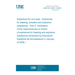 Explosivos para usos civiles. Explosivos para voladuras, multiplicadores y sustancias explosivas. Parte 3: Verificación de la insensibilidad a la fricción de explosivos para voladuras y sustancias explosivas (Ratificada por la Asociación Española de Normalización en enero de 2026.)