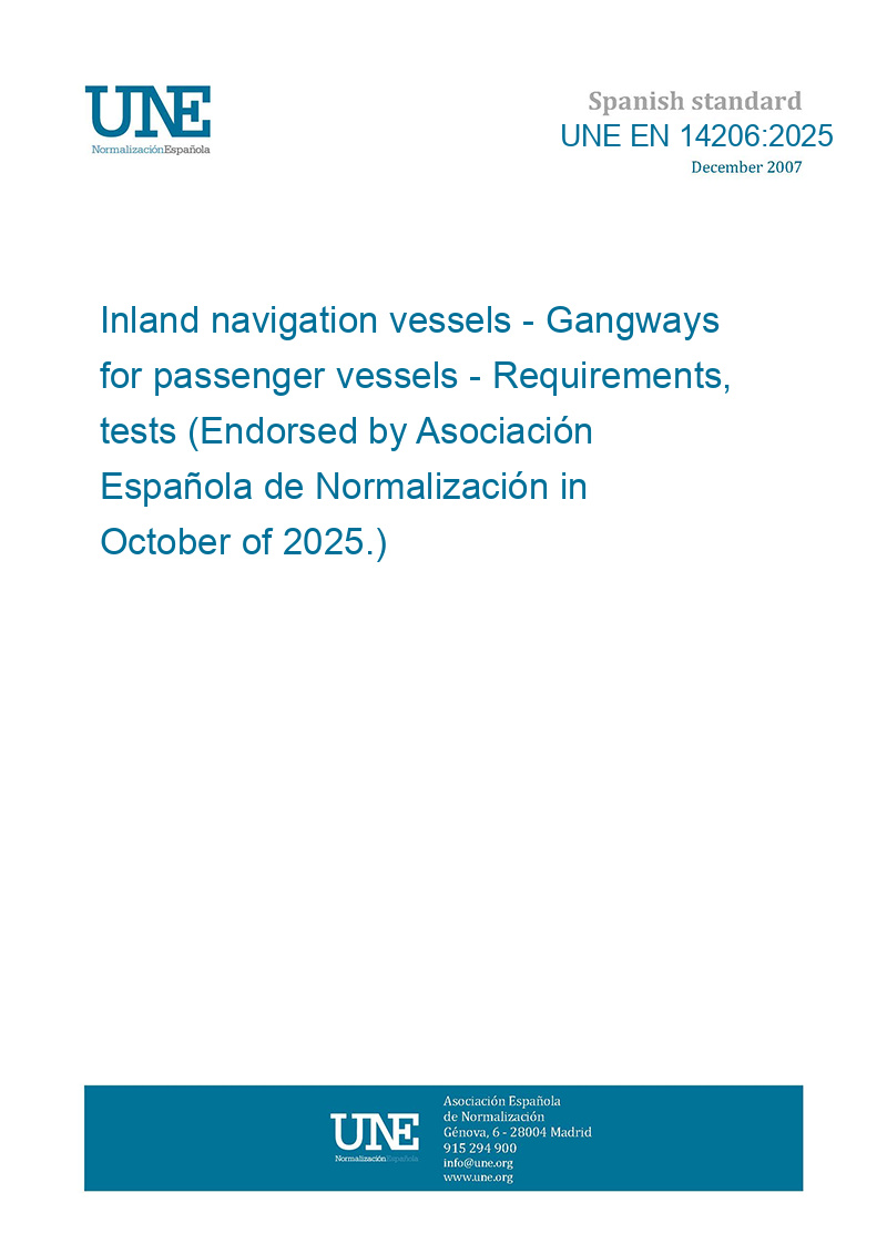 Embarcaciones de navegación interior. Pasarelas para embarcaciones de pasajeros. Requisitos, ensayos. (Ratificada por la Asociación Española de Normalización en octubre de 2025.)