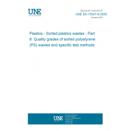 This standard UNE EN 15347-6:2026 Plastics - Sorted plastics wastes - Part 6: Quality grades of sorted polystyrene (PS) wastes and specific test methods is classified in these ICS categories: