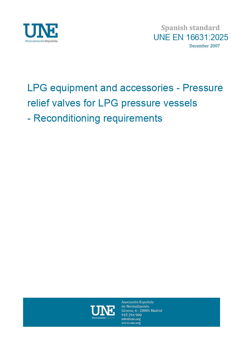 This standard UNE EN 16631:2025 LPG equipment and accessories - Pressure relief valves for LPG pressure vessels - Reconditioning requirements is classified in these ICS categories: