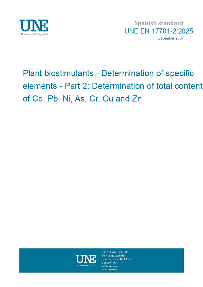 Bioestimulantes de plantas. Determinación de elementos específicos. Parte 2: Determinación del contenido total de Cd, Pb, Ni, As, Cr, Cu y Zn.