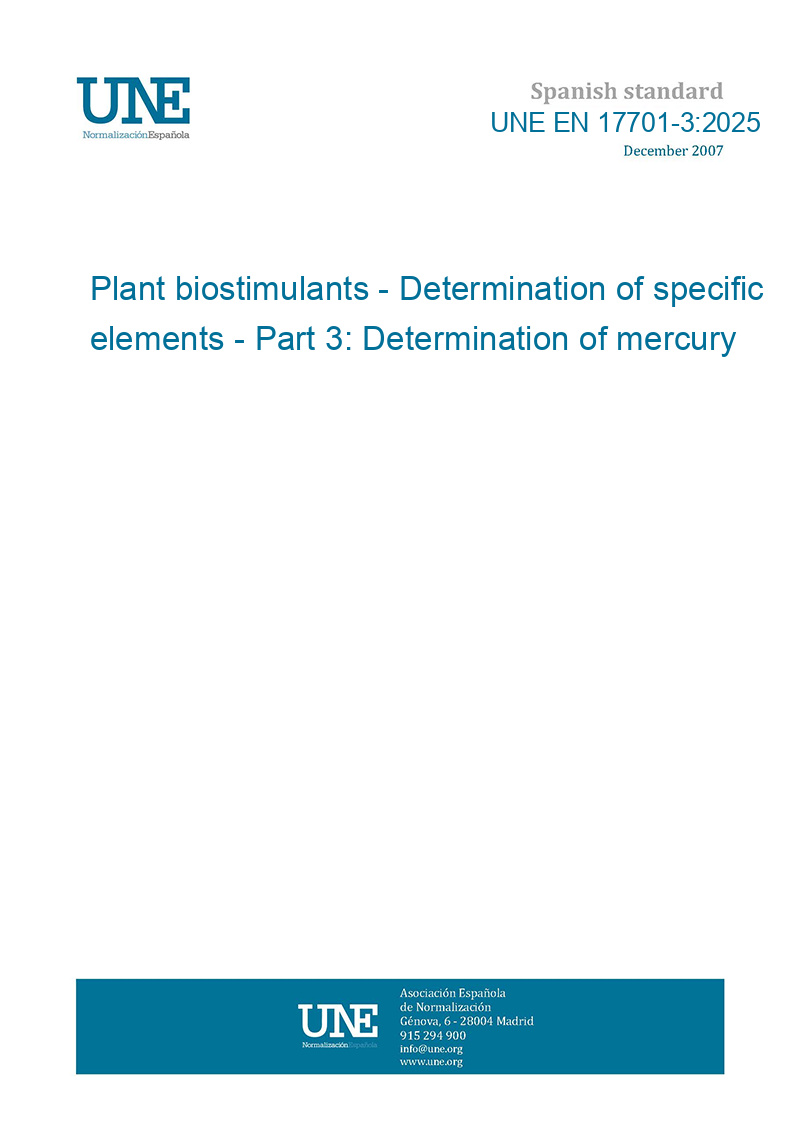 This standard UNE EN 17701-3:2025 Plant biostimulants - Determination of specific elements - Part 3: Determination of mercury is classified in these ICS categories: