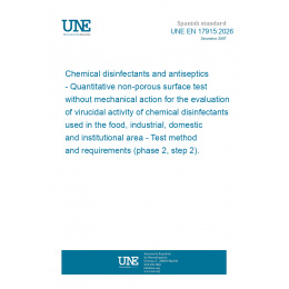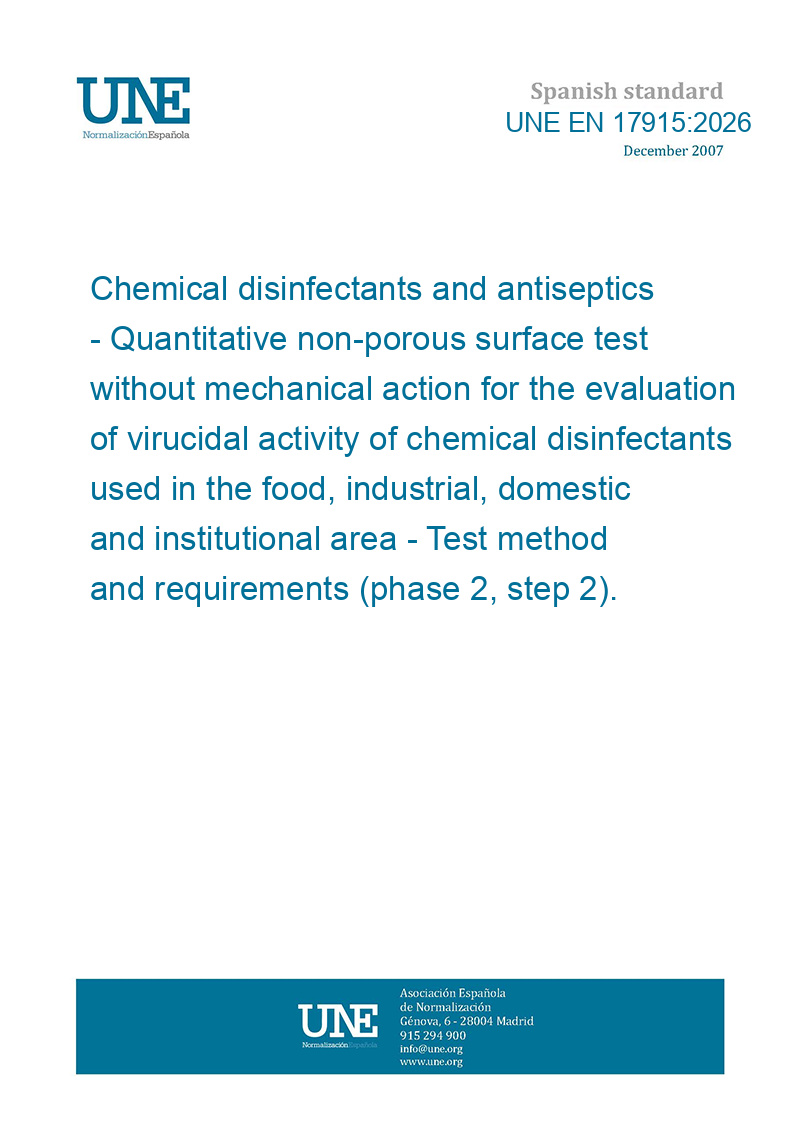 This standard UNE EN 17915:2026 Chemical disinfectants and antiseptics - Quantitative non-porous surface test without mechanical action for the evaluation of virucidal activity of chemical disinfectants used in the food, industrial, domestic and institutional area - Test method and requirements (phase 2, step 2). is classified in these ICS categories: