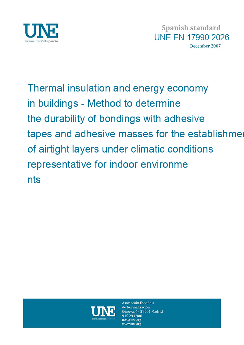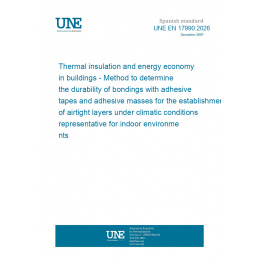 This standard UNE EN 17990:2026 Thermal insulation and energy economy in buildings - Method to determine the durability of bondings with adhesive tapes and adhesive masses for the establishment of airtight layers under climatic conditions representative for indoor environments is classified in these ICS categories: