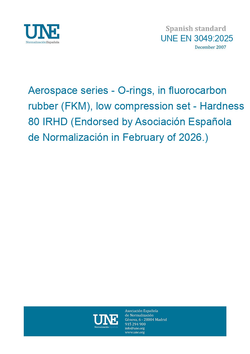 This standard UNE EN 3049:2025 Aerospace series - O-rings, in fluorocarbon rubber (FKM), low compression set - Hardness 80 IRHD (Endorsed by Asociación Española de Normalización in February of 2026.) is classified in these ICS categories: