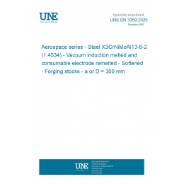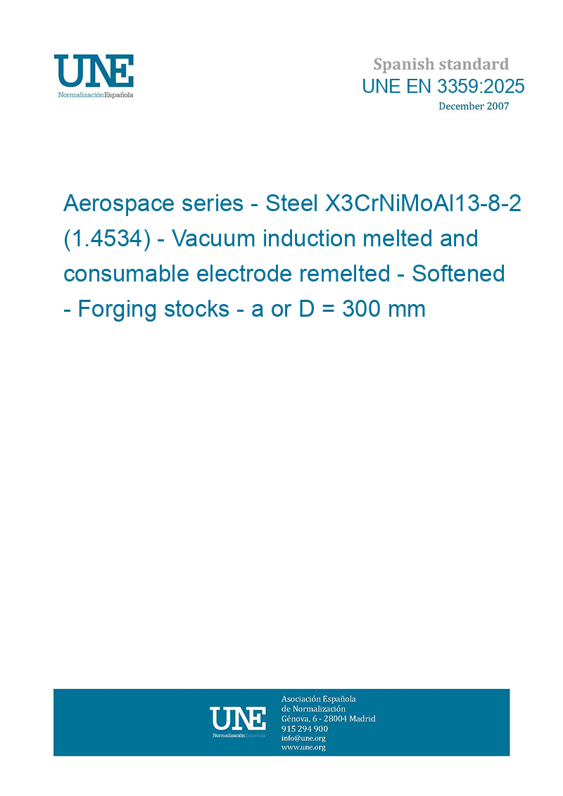 Material aeroespacial. Acero X3CrNiMoAl13-8-2 (1.4534). Fundido en vacío por inducción y refundido con electrodo consumible, templado, productos de forja a o D <= 300 mm (Ratificada por la Asociación Española de Normalización en octubre de 2025.)