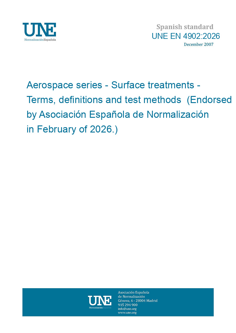 Material aeroespacial. Tratamientos superficiales. Términos, definiciones y métodos de ensayo (Ratificada por la Asociación Española de Normalización en febrero de 2026.)