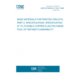 Materiales base para circuitos impresos. Parte 2: Especificaciones. Sección 15: Película flexible de poliimida laminada con cobre de inflamabilidad definida.