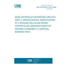 Materiales base para circuitos impresos. Parte 2: Especificaciones. Secció 3: Papel de celulosa con resina epoxídica, laminado con cobre, de inflamabilidad definida (ensayo de combustión vertical).